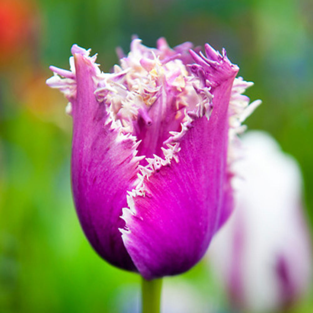 Cumpără Bulbi de Lalele Crete American Eagle, pachet de 5 bucăți! Flori spectaculoase de un violet intens cu margini franjurate albe. Calitate premium și livrare rapidă pentru o grădină plină de eleganță!