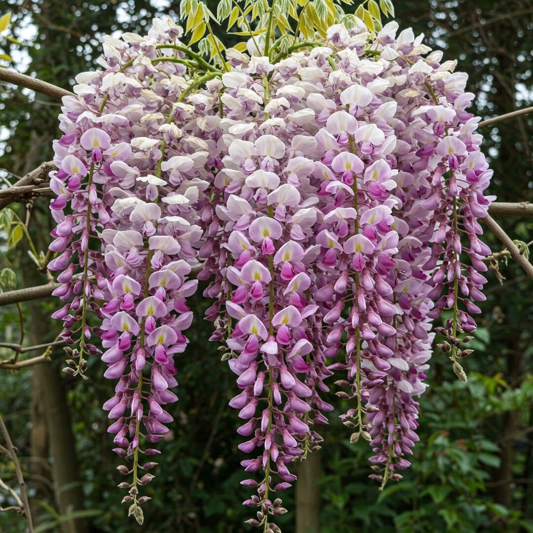 Flori: În ciorchini lungi, pendulari, de un roz delicat.